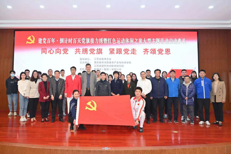 3月23日,为迎接和庆祝中国共产党诞辰100周年,由江苏省体育总会指导,taptap国际服账号注册体育产业与休闲学院、江苏省现代休闲体育研究院联合主办的“同心向党 共绣党旗 紧跟党走 齐颂党恩——党旗接力绣暨红色运动休闲之旅大型主题活动”启动典礼在taptap国际服账号注册仙林校区举行。活动由江苏省现代休闲体育研究院执行院长徐悦主持