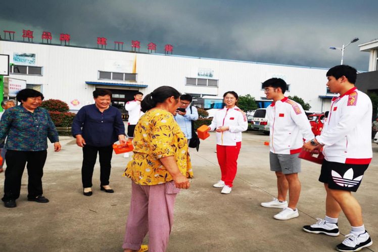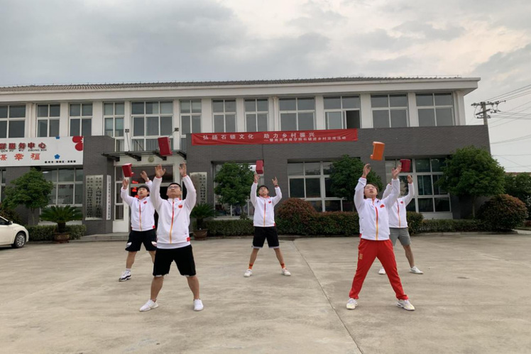 为积极响应非遗“六进”的号召,我校石锁队首站到达泰州市海陵区苏陈镇大冯甸村,与当地村民进行石锁交流。队员们展示石锁动作技能与创编的石锁健身操,村民兴致激昂,纷纷投入学习。队员们分组进行教学,耐心指导,让大家感受到了非物质文化遗产的独特魅力。随后,在当地负责人的带领下,我校石锁队来到城东中心小学,面对不同年级的学生,队员们以寓教于乐的方式,以石锁游戏为切入点向小学生们展示石锁运动,传授动作技能,弘扬石锁文化,激发学生学习热情。经过学习,非遗石锁在学生们手中上下翻飞、抛接自如,令学生们兴奋不已,在他们心中播下了非遗传承的种子。