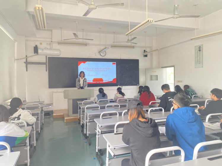 会上,刘雪薇带领大家认真学习习近平总书记在大会上发表的重要讲话。她指出,习近平总书记的讲话,深刻的启示我们实现中华民族伟大复兴,必须有领导中国人民前进的坚强力量,这个坚强力量就是中国共产党。党旗所指就是团旗所向。作为团学骨干,我们要牢牢把广大团员青年团结和凝聚到党的周围,引导广大团员青年在服务人民、奉献社会、建设祖国的生动实践中体现人生价值。