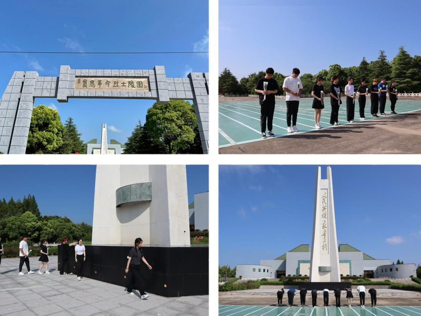 为积极响应团中央《关于开展2022年全国大中专学生志愿者暑期文化科技卫生“三下乡”社会实践活动的通知》相关要求,用好红色资源,更好发挥革命英烈的引领作用,体育产业与休闲学院“苏北小延安”发展成就观察团,于8月1日来到扬州市宝应县进行“追逐红色记忆,传承先辈血脉”的暑期“三下乡”社会实践活动。宝应,素有光荣革命传统,是一方英雄的沃土。在宝应的这次实践活动中,成员们在“宝应县革命烈士陵园”重温宝应历史,缅怀革命先烈、在“周恩来少年读书处”中体味水巷情深,感受浓浓乡情、在“红枫园——苏中革命历史纪念馆”和“苏中公学纪念馆”追逐红色记忆,探寻革命精神。