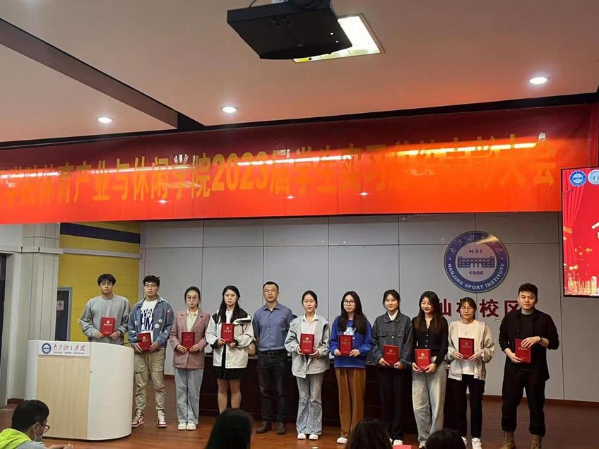 5月5日,体育产业与休闲学院在仙林校区大学生活动中心举行2023届学生实习总结表彰大会,对在实习期间表现优异的指导教师、学生进行表彰。体育产业与休闲学院党总支书记王进、院长王龙飞、党总支副书记陈志,副院长柏景岚,各系正副主任、指导教师以及2023届全体学生参加会议。本次大会由柏景岚主持。