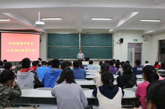 2015年10月12日晚,运动健康科学系2015级新生师生见面会在教学实验楼阶四教室顺利举行。系主任孙飙、副主任马林、杨晖,各专业教研室、实验室负责人、老师及2015级全体新生参加了活动。