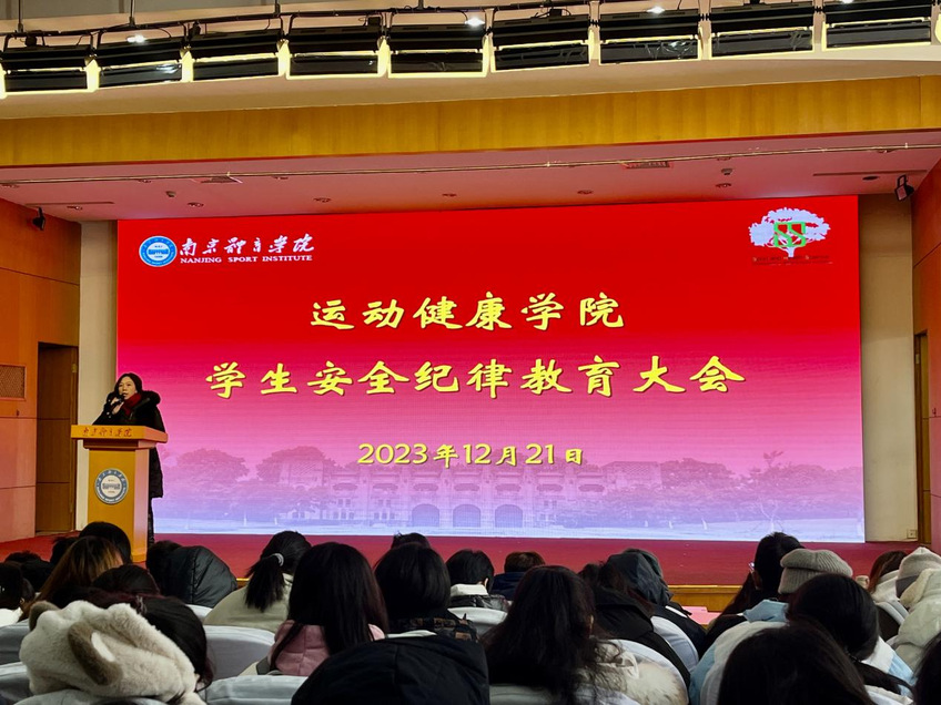 为进一步强化安全风险预警,切实做好学院安全工作,有效防止学生各类安全隐患发生,保障学生人身安全。12月21日,运动健康学院在图书馆报告厅召开了学生安全纪律教育大会,学院党总支副书记阚妮妮、学院辅导员及全体在校学生参加了会议。大会由学工办主任王菁菁主持。