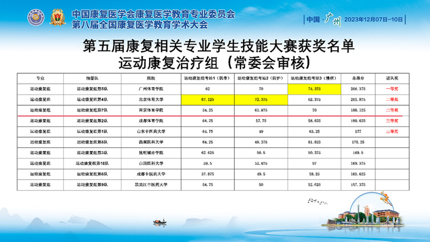 2023年12月7日-12月10日,由中国康复医学会主办、南方医科大学承办的第五届全国康复治疗相关专业学生技能大赛在南方医科大学珠江医院举行,全国高校共组成72支队伍参加了本次比赛。