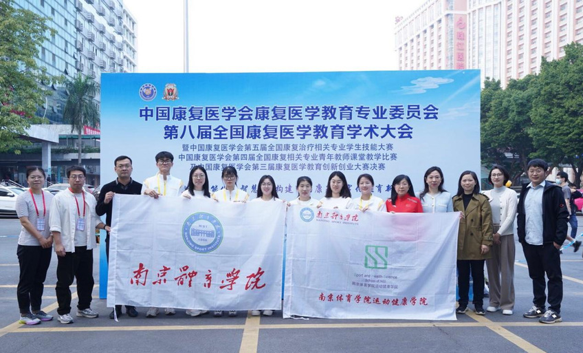 通过层层选拔、集中培训及模拟考核,由阚妮妮副书记、赵彦副院长带队,杨辰、罗维、戴建松、王侃、顾磊、沈娟红担任指导老师,2020级运动康复专业学生许梦涵、郝雅蕴、浦静羽、刘威和康复治疗学专业学生秦亚瑄、徐诺、陈玥彤、詹慧敏分别代表我校参加运动康复和康复治疗两个赛道比赛。
