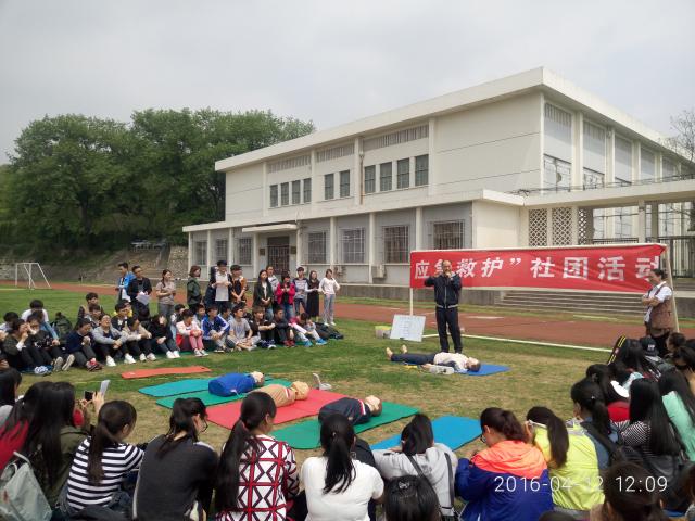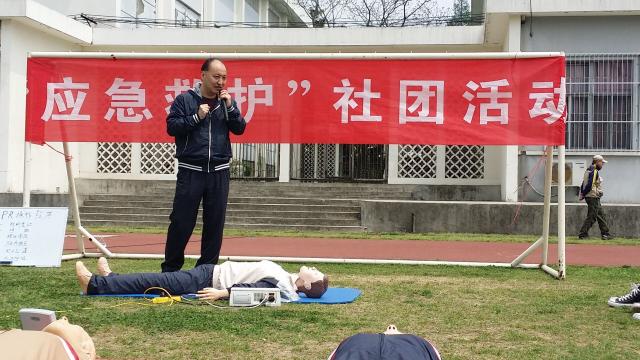4月12日中午,“应急救护”社团第一次教学活动在我院橄榄球场成功举行。运动健康科学系党总支书记、主任孙飙教授,社团指导老师、运动健康科学系团总支书记喻菊老师及全体社员参加了本次活动。