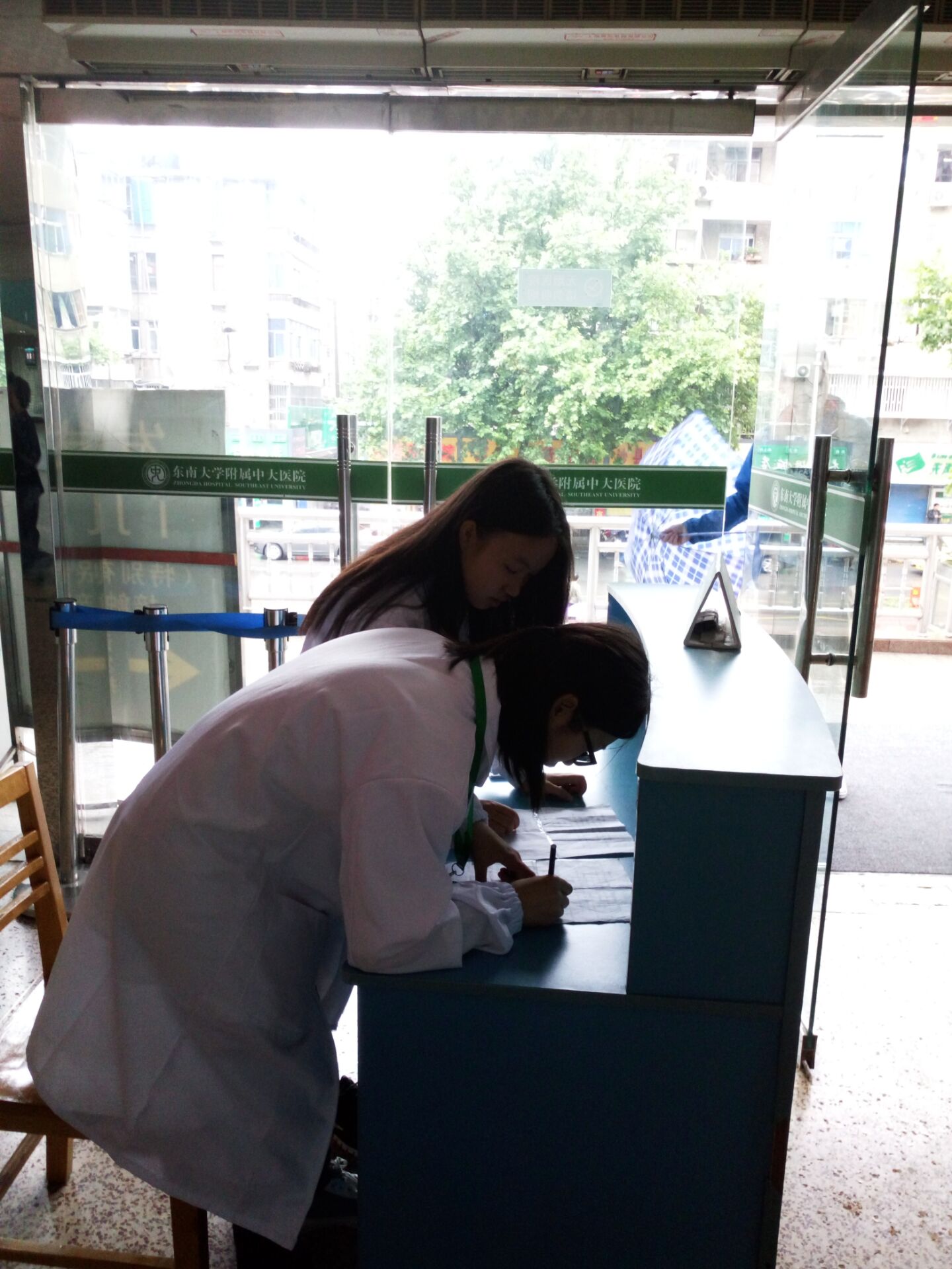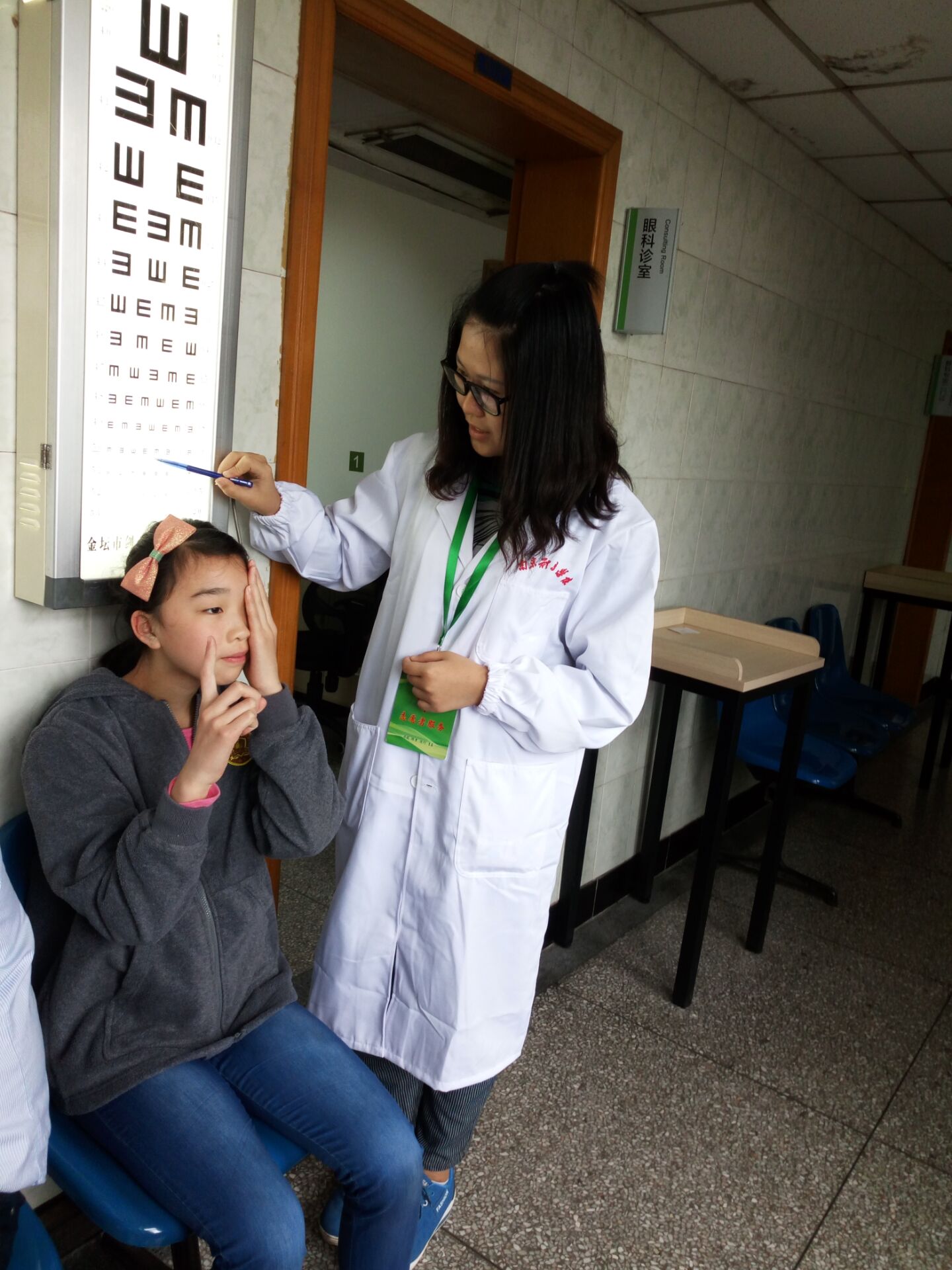 本周的志愿者为:金晨、张世禹、高欣悦、王慧洋和周凤,大家在门诊、眼科有条不紊的工作,将志愿精神完美的体现出来!门诊的同学提前熟记医院里各个科室所在的楼层、位置和方向,并且负责贴心地给病人指引。眼科的三位同学也很有耐心的帮患者测视力,遇到老年人和小朋友时更加细心。