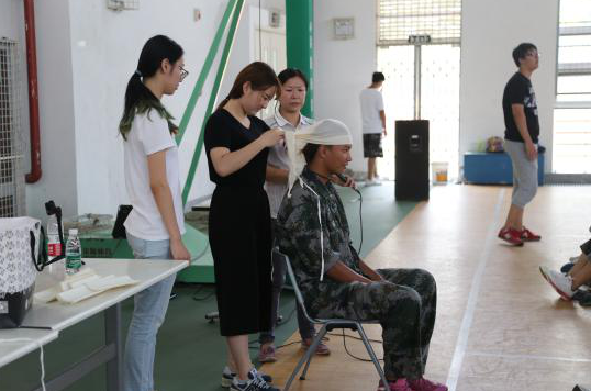 接下来,张医生与急救社成员相互配合,就CPR技术、头部包扎等急救方法进行细致讲解、演示。新生们对此充满了兴趣,一个个都在认真聆听,仔细记录。