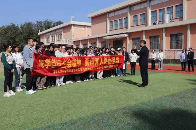为深入学习贯彻党的二十届四中全会精神,促进党建与教学实践有机融合,服务教育强国、科技强国、人才强国及健康中国战略,11月10日中午,运动健康学院运动人体科学系党支部组织开展了“深学笃行全会精神 勇担育人使命担当”——深入学习贯彻党的二十届四中全会精神主题党日活动暨《运动机能生理生化测试》课程户外实践教研活动。党委常委、副校长陈爱国、运动健康学院领导班子成员和运动人体科学系教师和学生一起参与活动,活动由运动人体科学系党支部书记张媛主持。