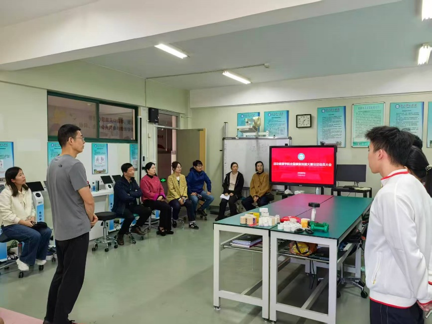 运动健康学院对本届赛事给予了高度重视。学院书记阚妮妮、院长汤强亲自部署备赛工作,为参赛团队提供了全力支持。在备赛阶段,指导教师戴剑松、顾忠科、张媛、张欣、沈娟红、罗维、杨辰等老师倾注了大量心血,带领由运动人体科学、运动康复两个专业6名学生组成的代表队进行了系统性的强化训练。训练内容紧密围绕竞赛要求,涵盖了专业理论、肌骨康复、运动防护和运动处方等多个核心模块,全面提升了学生的综合技能与团队协作能力。