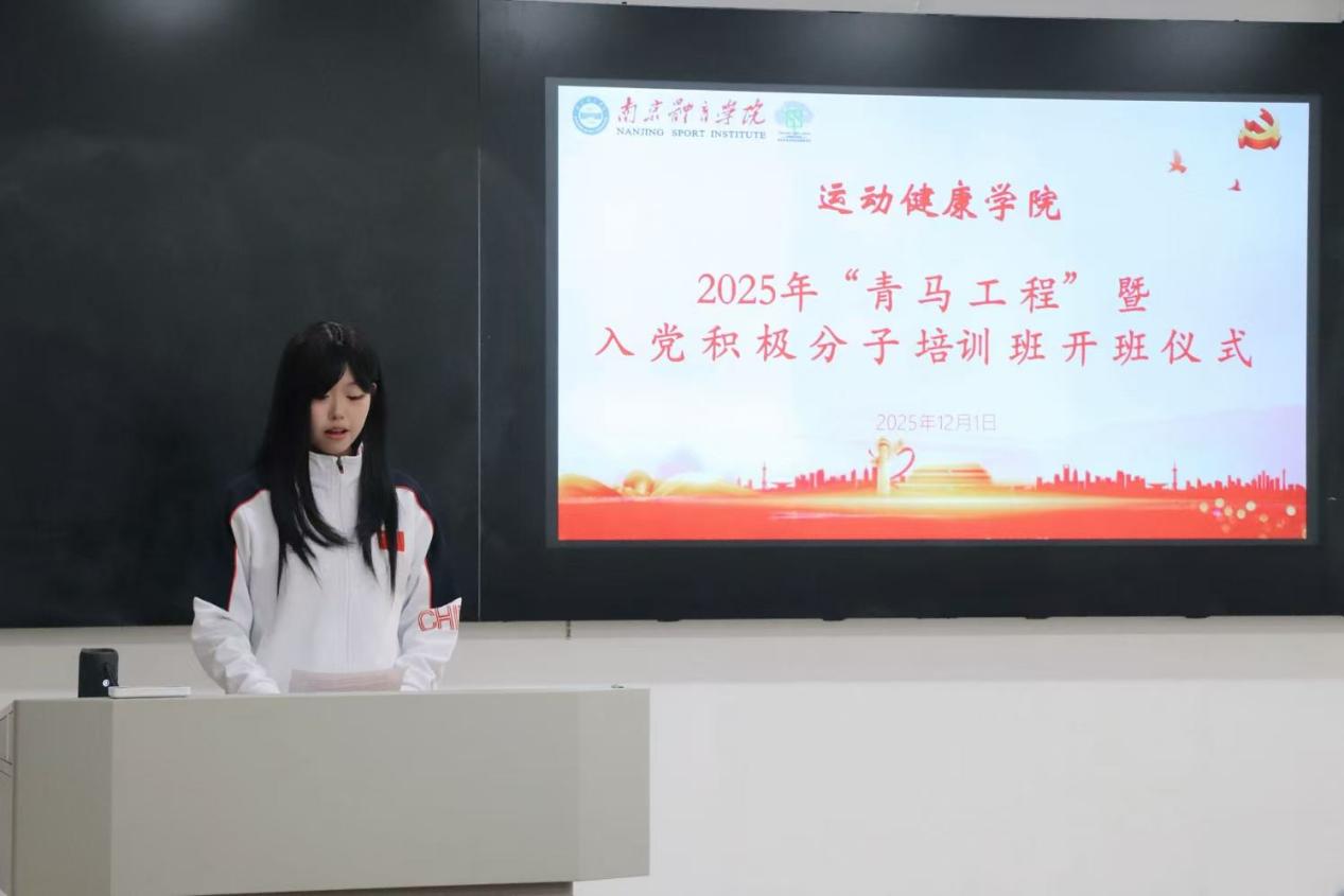 为深入学习贯彻习近平新时代中国特色社会主义思想和党的二十届四中全会精神,扎实推动青年思想政治引领工作走深走实,12月1日下午,运动健康学院在图书馆第二报告厅举行2025年“青年马克思主义者培养工程”暨入党积极分子培训班开班仪式。运动健康学院党总支书记阚妮妮、副书记刘莉、组织员王爱林、分团委副书记马高曼以及本期培训班全体成员参与开班仪式。本次开班仪式由马高曼主持。