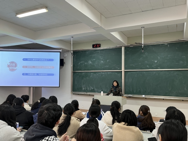 葛翆柏老师主讲了为什么要信仰马克思主义,展示了新时代马克思主义信仰的魅力,介绍了老红军何木林“装哑十四年,忠骨埋青山”的故事,带领同学们认识到共产党员的坚定信仰。同学们齐齐落座,认真听取学习葛翠柏老师的讲解,讲座气氛活跃,会场纪律良好。