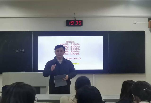 12月23日晚上八点,92041班于教学楼1202教室召开期末考试动员大会暨诚信考试教育大会,由班主任郭士杰老师主持,92041全班同学参与。