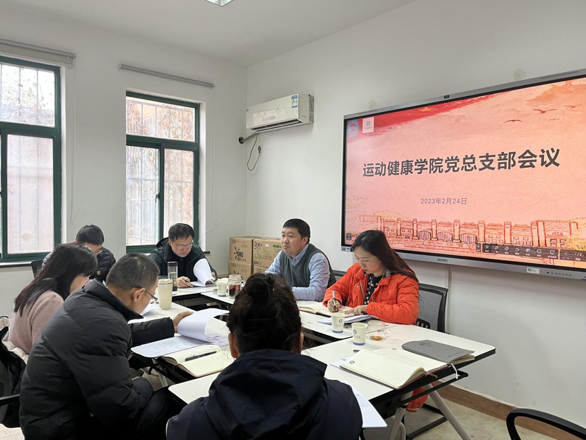 会议研究了运动健康学院领导班子分工安排、学院党总支委员会委员分工调整、学院党总支部理论学习中心组成员调整、学院分工会增补分工会主席等事宜,对学院2022年度处级党员领导干部民主生活会、2022年度基层党组织组织生活会和党员民主评议以及2023年2月份党支部主题党日等工作开展进行了研究部署。