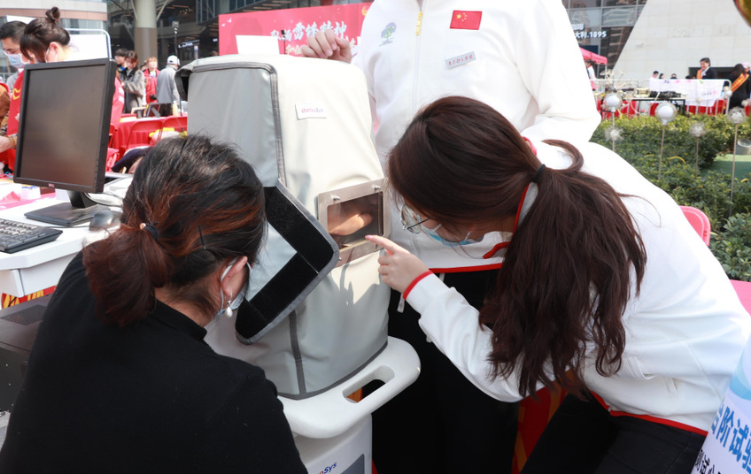 活动前,”动健康志愿服务队在校团委和学院领导的指导和帮助下积极筹备本次志愿服务活动,在学校实验室老师的现场教学下熟悉各项仪器设备的使用方法,进一步提升志愿服务水平,确保本次志愿服务活动顺利开展。活动现场,志愿服务团队运用实验仪器现场为市民进行台阶试验测试、体成分测试和骨密度测试,为测试者提供专属的体质监测报告,开出针对性“运动处方”,提供科学健身指导,进一步增强广大群众对自身体质状况的认识和科学运动健身意识,提高大众参与健身活动的积极性、主动性和科学性。本次志愿服务活动项目结合体育院校特色,将康复理念与体育运动相结合,通过体育科技吸引了络绎不绝的测试者,志愿者们用真诚态度、真心服务、真情付出,赢得了现场群众的一致欢迎和好评
