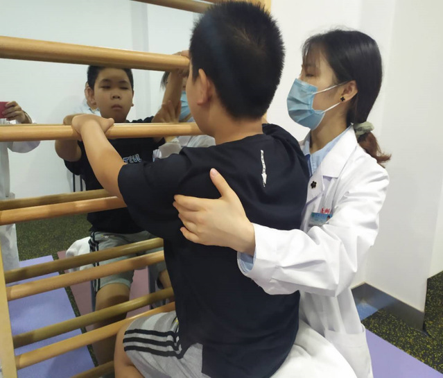 封盼盼给脊柱侧弯小朋友行康复治疗