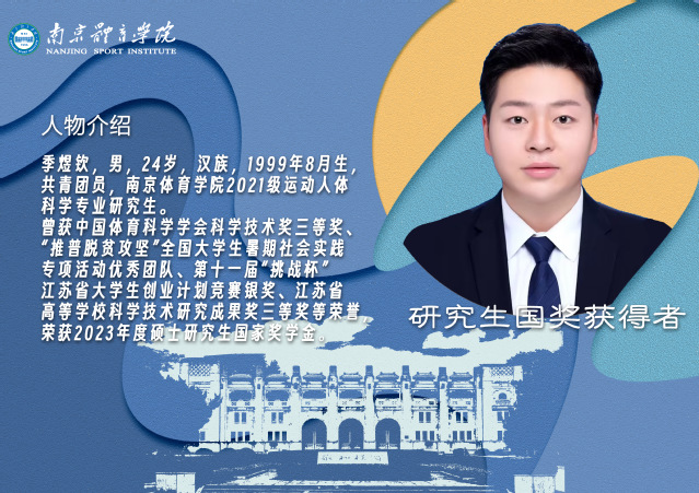 研究生期间,季煜钦继续坐稳科研的“冷板凳”,潜心于自己的运动促进健康研究领域,用赤子之心守护群众健康,相关成果最终发表于国际高水平期刊《Frontiers in psychiatry》(JCR二区,IF=5.4)。同时季煜钦也积极参加学术会议,了解领域前沿、拓宽科研思路、分享科研成果,其两篇论文被十三届全国体育科学大会录取,并做专题报告。