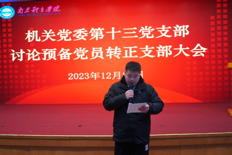 预备党员高强宣读转正申请书