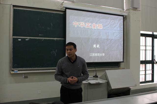 2015年12月11日下午,江苏师范大学体育学院周武教授在我院灵谷寺校区教学实验楼阶三教室为我院研究生开展了一场关于“中华五禽操”的专题讲座。