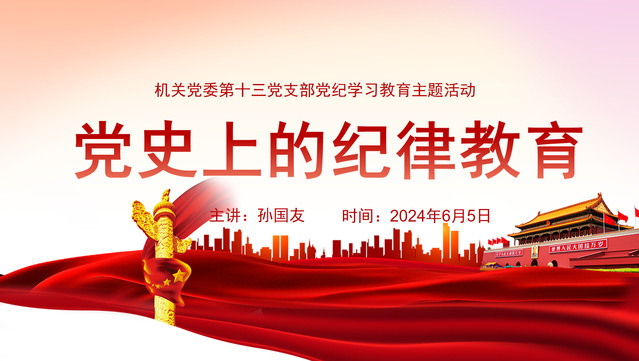 随后,孙国友向全体党员讲授《党史上的纪律教育》专题党课,他按照中国共产党党史的时间线,从“建党之初、延安时期、抗战胜利后、建国初期、改革开放初期、十八大以来”六个党的纪律教育发展的里程碑讲述了党史故事,并针对经典生动的历史案例进行重点讲解,对党的光辉历程和优良传统进行了深刻解读。他指出,党员干部要进一步将党规党纪落到实处,纪律定力不是一句空谈,而是党员干部日常行为的衡量准则。全体党员应当始终坚定信念,树立纪律意识,对自己提出高标准、严要求,时常自省,常修为政之德、常思贪欲之害、常怀律己之心,将纪律意识具体化,做到知行合一、知行知止、令行禁止,在生活和工作中时时锤炼自身的纪律定力。