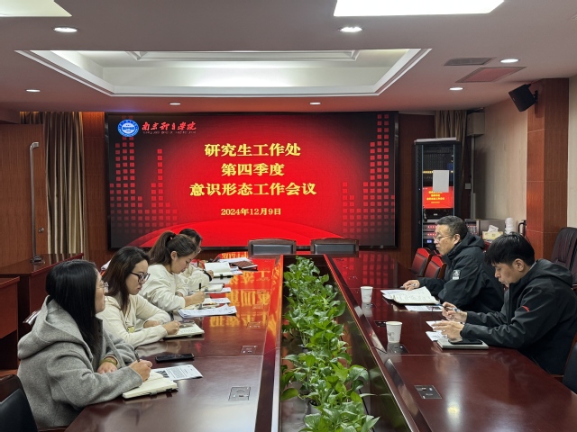 12月9日上午,研究生工作处召开2024年第四季度意识形态工作联席会议。会议由党总支书记孙国友主持,全体教职工参加会议。