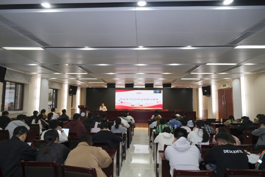 上,党总支书记孙国友详细解读了2025年全国“两会”报告中的重点内容和精神实质,包括国家经济发展、社会民生、科技创新、教育改革等方面的新政策、新举措。孙国友指出,全国“两会”精神体现了党和国家的新要求、新期望,是我们研究生党员必须深入学习和领会的重要内容。他要求全体党员要深刻认识全国“两会”精神的重要意义,将学习成果转化为实际行动。