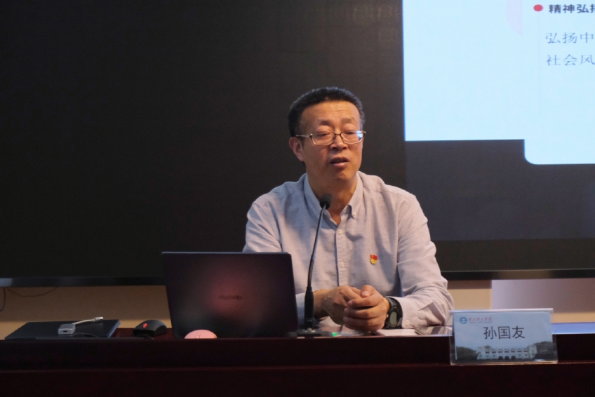 根据上级党组织关于学习贯彻2025年全国“两会”精神的指示要求,为进一步加强我校研究生党总支研究生党支部和教工党支部的思想政治建设,提升党员干部的党性修养和理论水平,3月27日,研究生党总支教工党支部、研究生党支部联合召开支部大会,开展《学习贯彻2025年全国“两会”精神》专题党课学习。会议由党总支书记孙国友主持。