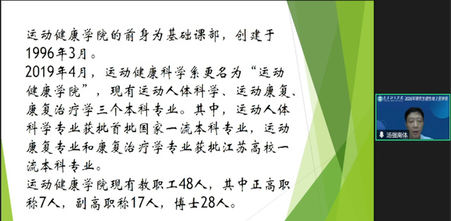 6月19日,研究生工作处组织了2026年硕士研究生招生宣讲直播。研究生工作处处长孙国友、体育教育与人文学院院长彭国强、运动训练学院院长赵琦、运动健康学院院长汤强、武术与艺术学院院长张明、体育产业与休闲学院院长郭修金参加了宣讲。孙国友在直播中和广大考生及考生家长分享了我校研究生培养特色、奖助体系和以往人才培养取得的成绩,并重点解读了2026年我校研究生招生新政策。五位院长分别为考生们介绍了学院办学特色、研究生培养、导师团队、科研成果和研究生就业等内容。在提问答疑环节,各位院长就考生重点关注的报考专业、教学设施、就业前景等问题在线予以逐一解答。