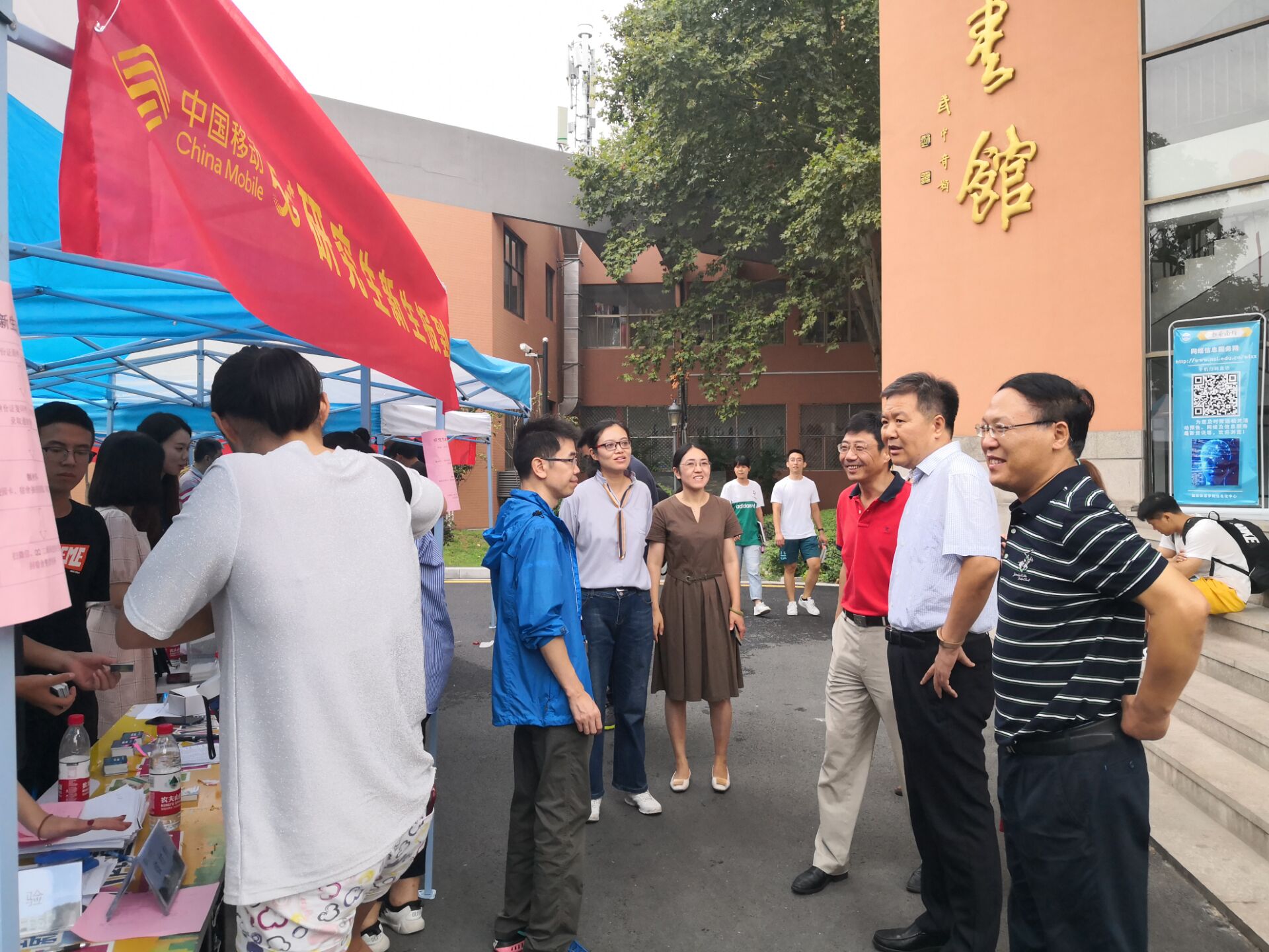 校党委副书记兰亚明、学工处处长唐存楼一行检查新生报到工作