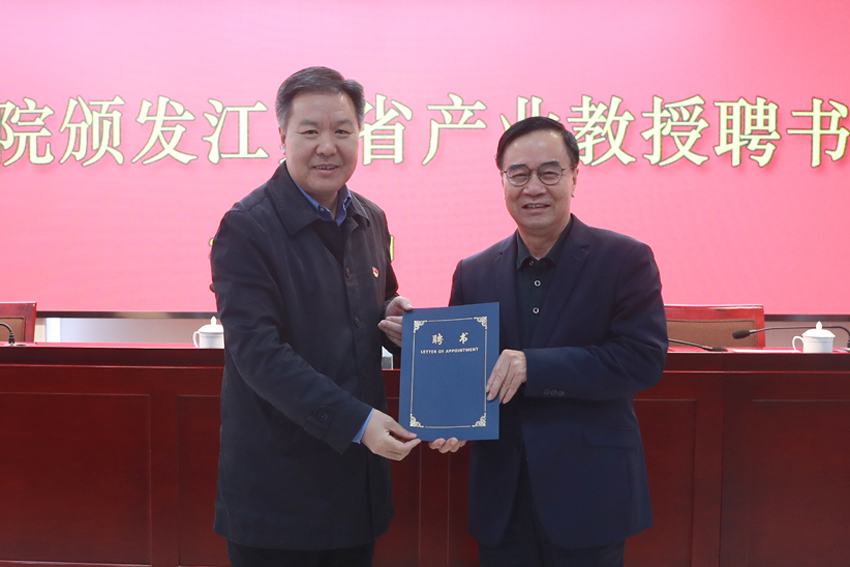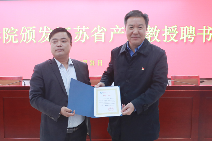校党委书记朱传耿教授为黄俊游颁发产业教授聘书