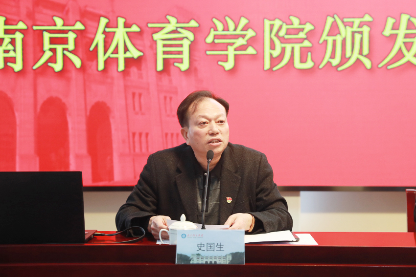 学术报告前,史书记向部分教师和全体研究生介绍张国良教授,希望全体同学要珍惜宝贵的学习机会,虚心请教、认真聆听、积极思考,努力提升自身的科技素养,将来为我国体育强国建设、体育产业发展贡献力量。