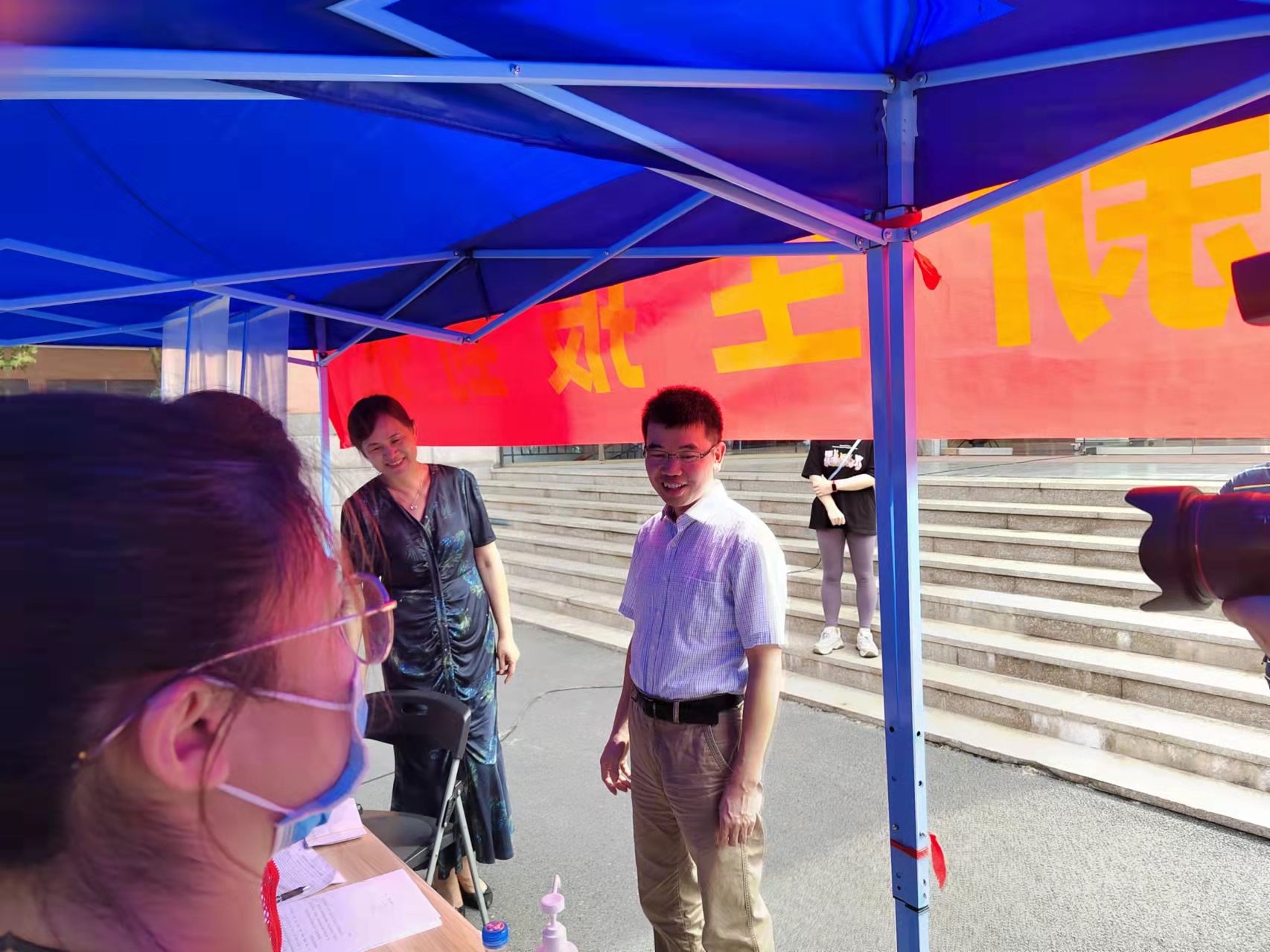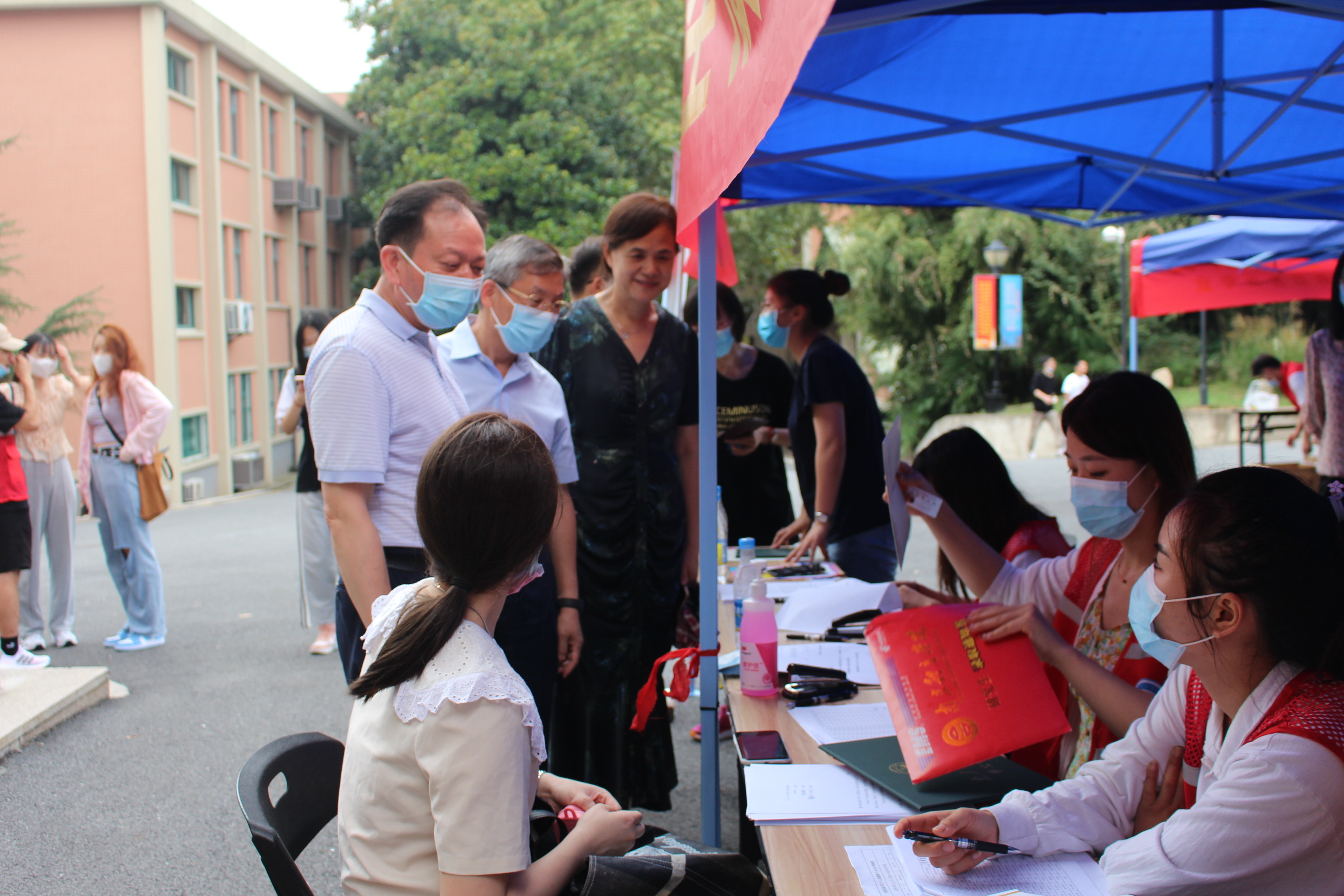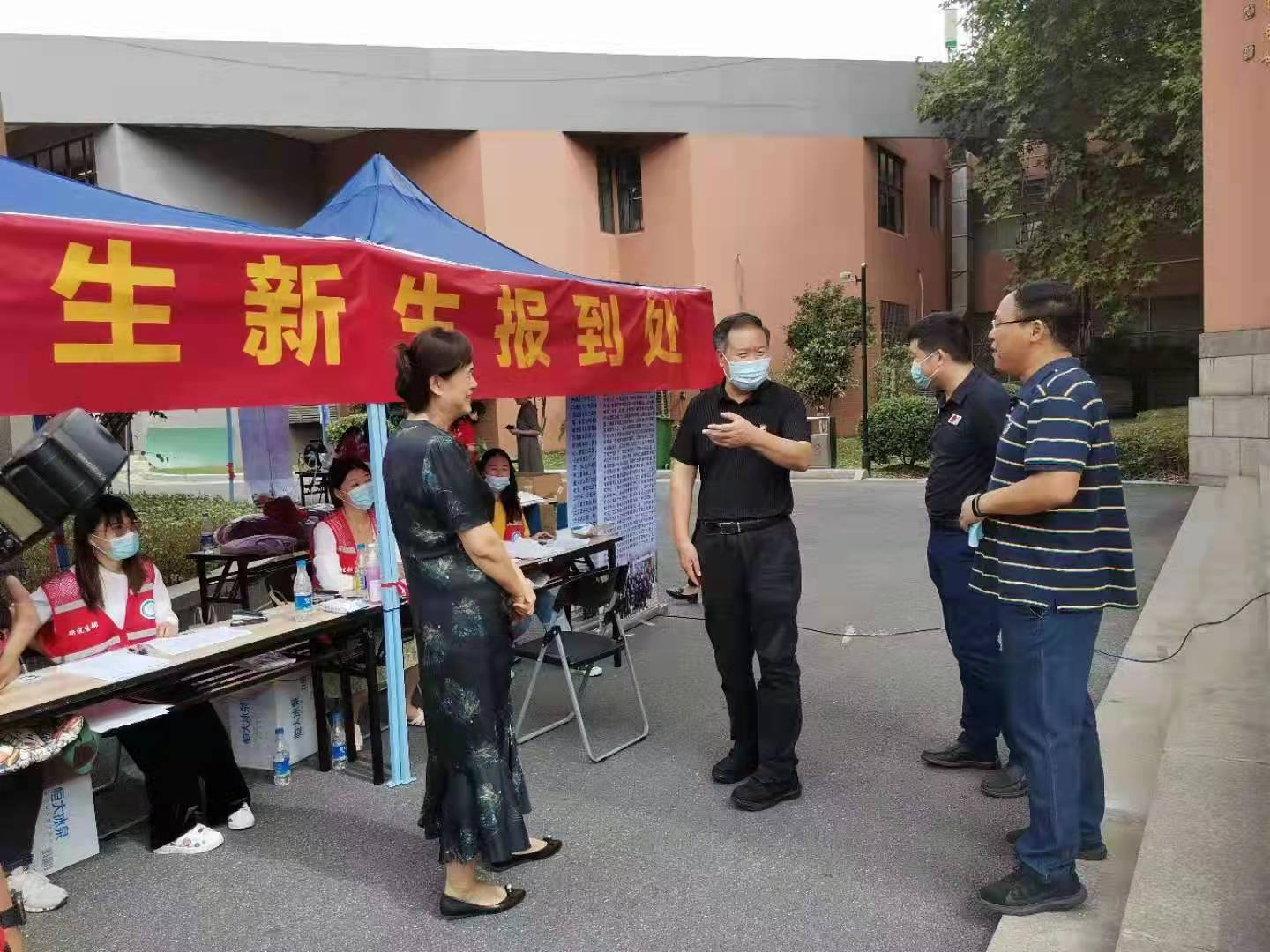 校党委副书记、副校长史国生和总会计师黄步龙一行检查新生报到工作