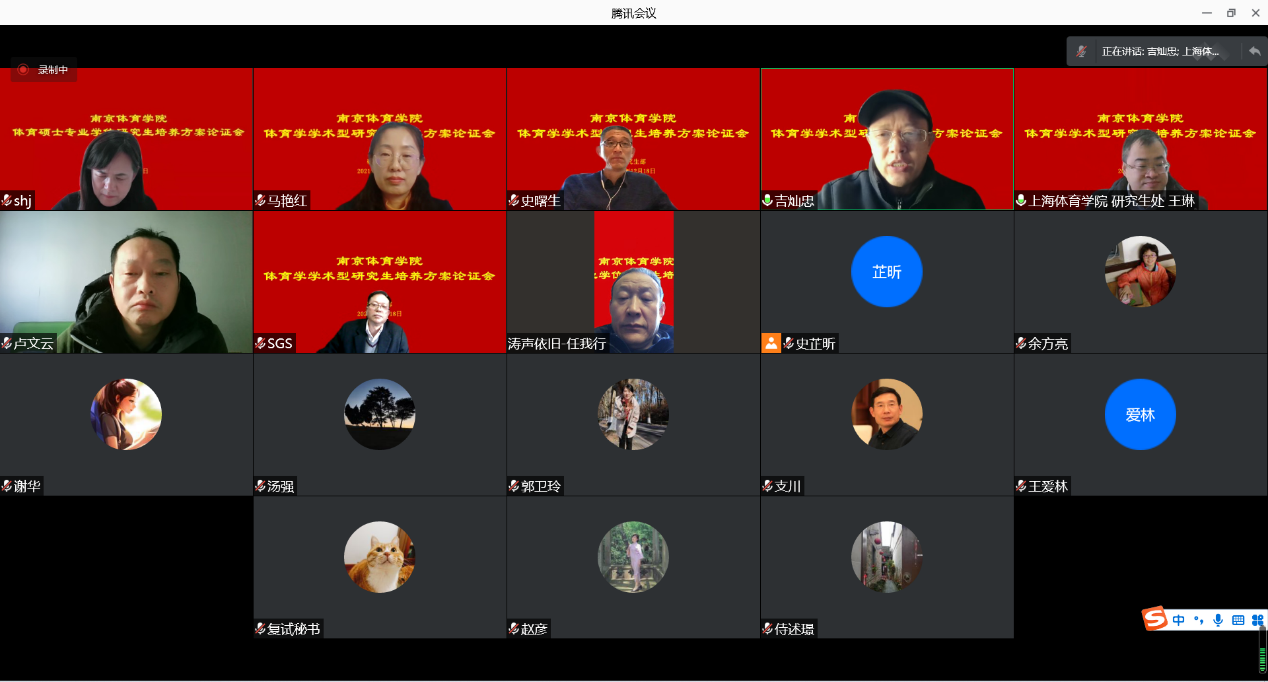 20211218日上午9时,我校召开体育学一级学科(学术型)硕士研究生培养方案论证会。校党委副书记、副校长史国生出席并发表讲话,上海体育学院研究生处副处长王琳、上海体育学院发展规划处副处长卢文云、沈阳体育学院研究生处处长马艳红、南京师范大学体育科学学院副院长史曙生、南京师范大学体育科学学院教授吉灿忠、研究生部主任及全体成员、各二级学院院长、相关老师及秘书参加会议。会议由研究生部主任沈鹤军主持。