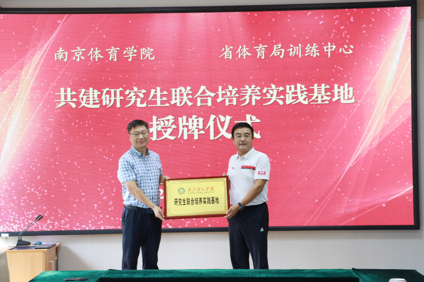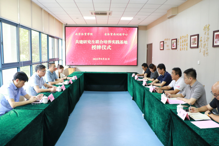 9月21日上午,我校在省体育局训练中心举行共建研究生联合培养实践基地授牌仪式。省体育局副局长刘彤,党委常委、副校长陈爱国出席授牌仪式。省体育局训练中心主任马兆森,医务科科长吴荣荣、副科长李彦和徐朋,我校研究生处处长孙国友、副处长谢正阳参加仪式。仪式由省体育局训练中心副主任刘海岚主持。