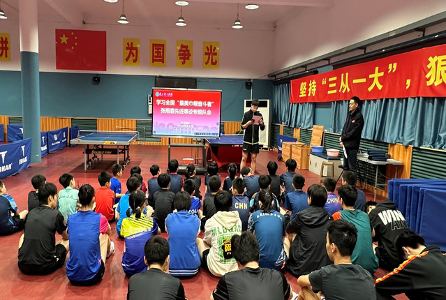 会上,徐炳生领队首先传达了学校《关于做好全国“最美巾帼奋斗者”张雨霏先进事迹宣传学习的通知》。随后运动员代表王天琪等和大家一同分享了张雨霏在训练比赛中顽强拼搏、不畏强手、勇于争先的精神与感人事迹,并一起观看了央视记者采访张雨霏的视频资料。紧接着徐炳生领队结合刚刚结束的国青队选拔赛和江苏省乒乓球青少年俱乐部联赛中大家优异的表现,号召大家向张雨霏看齐,加强自律,敢想、敢做、敢担,胸怀祖国、心系人民、不畏艰难、刻苦训练、勇攀高峰,为江苏乒乓球事业的发展做出自己应有贡献。同时他指出,因部分队员还在外比赛,队伍下一步将继续深入开展学习“最美巾帼奋斗者”张雨霏先进事迹活动,并将组织专题分享会,充分发挥先进典型示范引领作用,努力形成争做先锋的浓厚氛围。