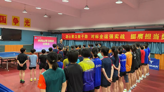 分享会上,徐炳生介绍了学校2024年暑期干部培训班的参训情况及个人学习体会着重向全体人员详细介绍了井冈山革命根据地的创建背景、历史沿革毛主席等革命前辈的感人事迹带领大家一同深入的学习了革命前辈所创建的井冈山精神随后,又向大家通报了学校解放思想大讨论中的发展远景及蓝图传达了学校领导在培训总结大会上的重要讲话精神号召大家加强对中国共产党党史的学习,立足本职岗位,树立远大理想,刻苦训练,敢于担当,从细微入手,遵纪守法,践行社会主义核心价值观,在接下来的夏训中刻苦训练,战高温斗酷暑,以实际行动践行乒乓球队誓言,全力备战,为完成阶段性目标任务奠定坚实的基础。