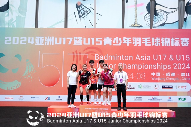 8月25日,2024亚洲U17曁U15青少年羽毛球锦标赛在四川成都落下帷幕,乒羽学院羽毛球队运动员史思宸、刘一诺夺得U17女单和女双冠军。