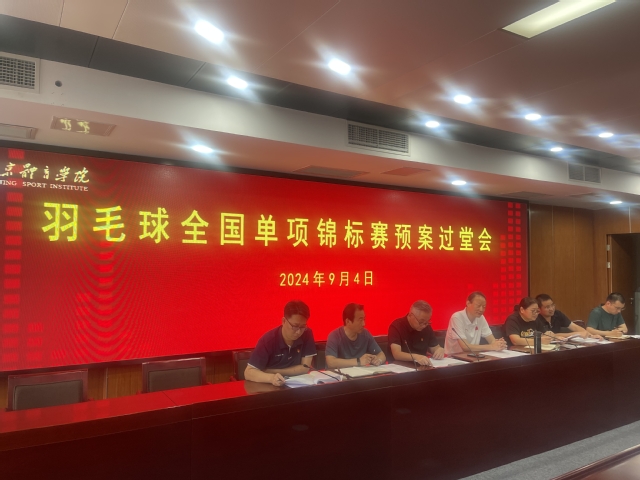 9月4日上午,乒羽学院在行政办公楼201会议室召开了2024年全国羽毛球单项锦标赛预案过堂会。校党委常委、副校长刘健出席会议并讲话,校训练与管理督导组专家任大新到会指导。乒羽学院院长冀方新、党总支副书记吴晓明、羽毛球队管理干部、教练员、科医保障人员以及训练处相关工作人员参加会议。会议由冀方新主持。
