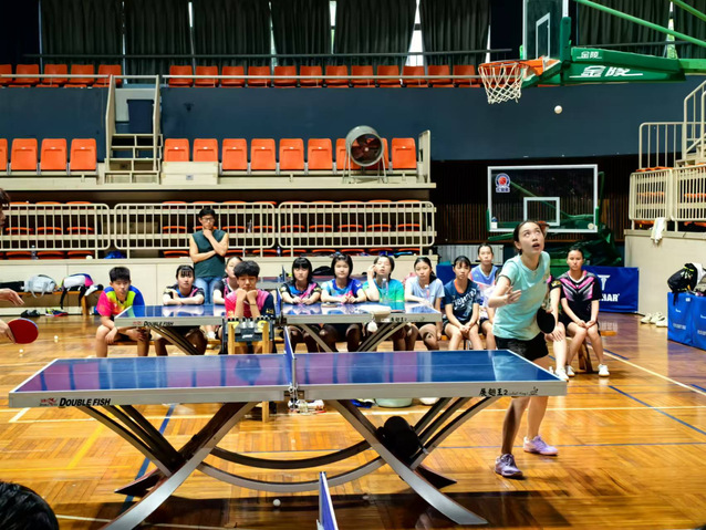 比赛中两名队员全心投入,火力全开,为全队奉献了一场激烈的高水平比赛。乒乓球队全体运动员认真观摩,分边加油助威,学习国家队运动员高水平的竞技对抗。