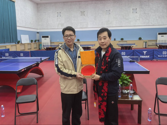 韩国前国家队奥运乒乓球选手石贺淨参加交流,并全程担任翻译。乒羽学院党总支副书记吴晓明出席活动,并代表学院向刘南奎赠送学校文创纪念品。