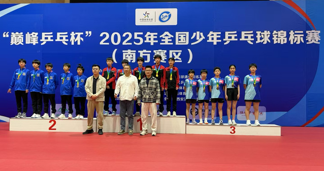 3月27日,“巅峰乒乓杯”2025年全国少年乒乓球锦标赛(南方赛区)在通州国家乒乓球训练基地落下帷幕,乒羽学院乒乓球队三线队伍共获得2枚金牌。
