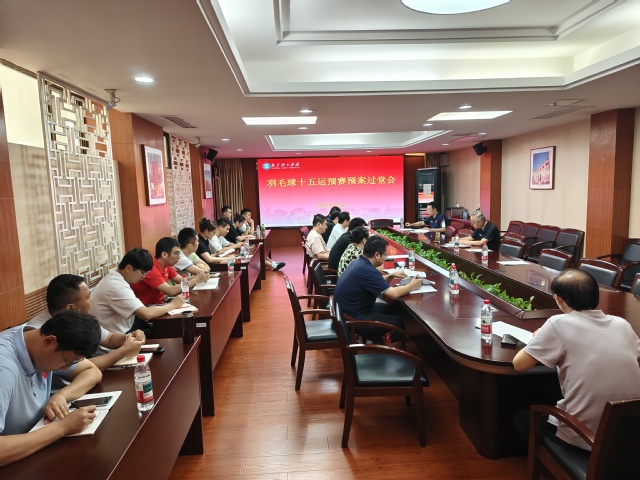 8月6日上午,学校在行政办公楼301会议室召开了羽毛球项目十五届全运会预赛预案过堂会。校党委常委、副校长刘健出席会议并讲话。训练处、校康复医院、乒羽学院负责同志,羽毛球队全体管理干部、一二线教练员、队医、体能教练等参加会议。会议由乒羽学院学院院长冀方新主持。