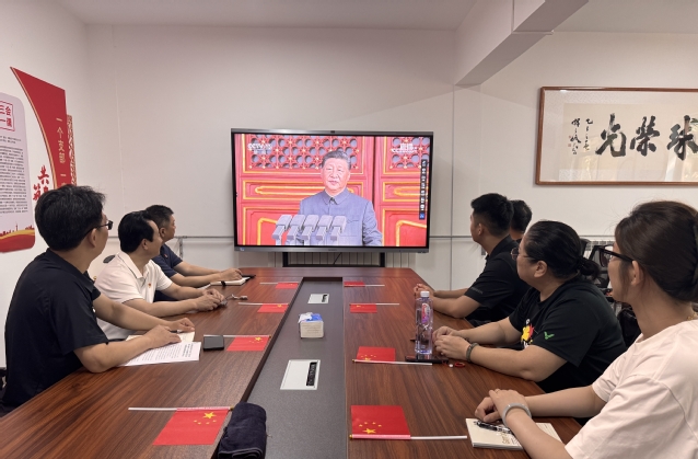现场,大家一起认真的聆听了习近平总书记的重要讲话,内心久久不能平静。阅兵式上,徒步方队身姿挺拔、步伐整齐,彰显着人民军队的威武风貌;装备方队中先进精良的武器装备依次亮相,展现我国国防科技的卓越成就;空中梯队呼啸而过,尽显空中作战力量的强大实力。当受阅部队迈着坚定有力的步伐通过检阅台时,现场观看的人员被深深震撼,激动与自豪之情溢于言表。大家全神贯注地注视着屏幕,仿佛置身于庄严的天安门广场,一同感受这激动人心的时刻。