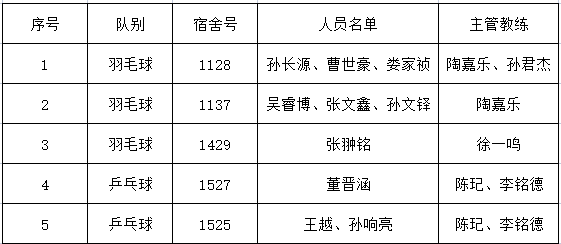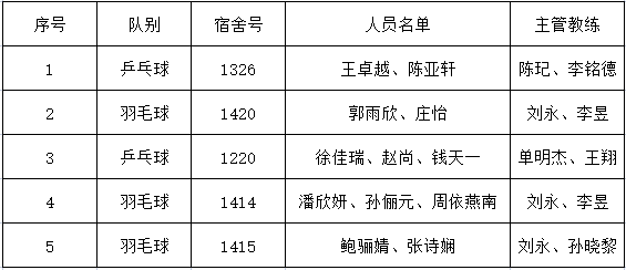 乒羽学院暑期运动员“标兵宿舍”评选结果揭晓