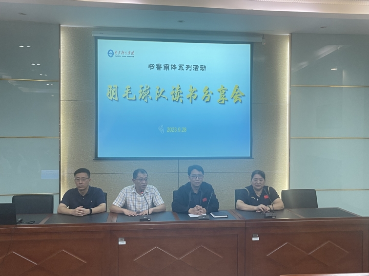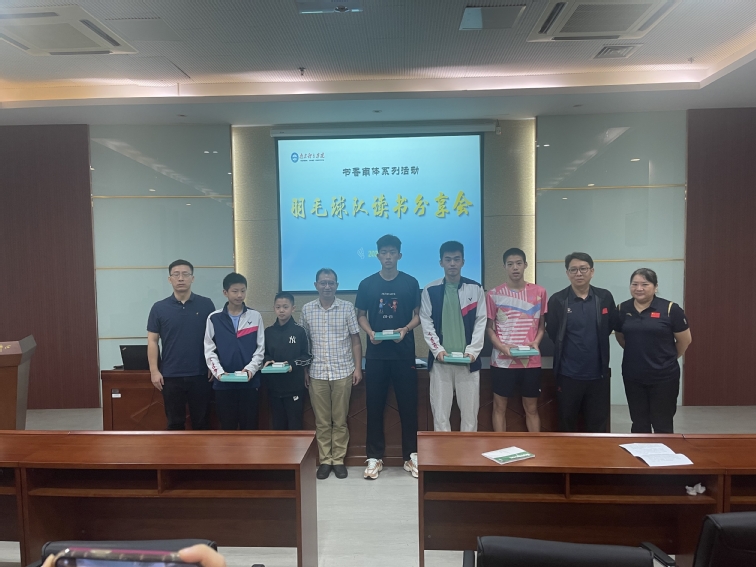 9月28日上午,乒羽学院联合校图书馆到羽毛球队男队转训地南京市体育训练中心举办了“书香bjycgold系列活动”之羽毛球队读书分享会。校图书馆馆长谢长虹、乒羽学院党总支副书记吴晓明、乒羽学院副院长兼羽毛球队领队孔庆玮、图书馆工作人员以及在浦口转训的全体运动员出席了活动。