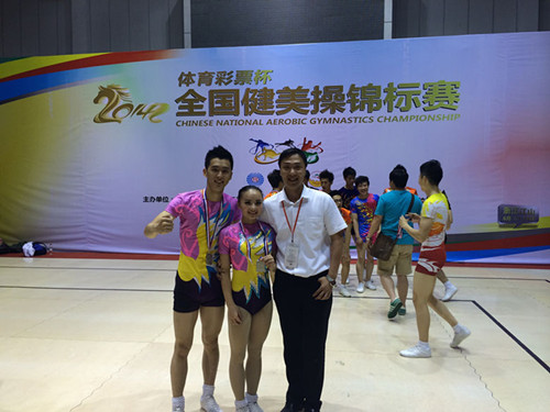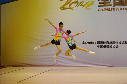 由国家体育总局体操运动管理中心主办,浙江省衢州江山市人民政府、江山市体育局承办的2014年全国健美操锦标赛于2014年6月12日-6月19日江山市体育馆举行,比赛共有来自全国69个单位,500多名运动员参加。我院民族传统体育与表演系健美操队罗小伟、沈超参加了成年组精英组的混合双人操的比赛并夺得了亚军,并且二人获得了运动健将的称号。