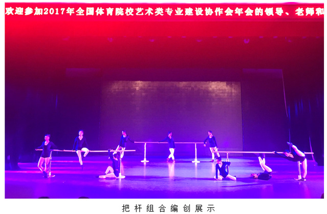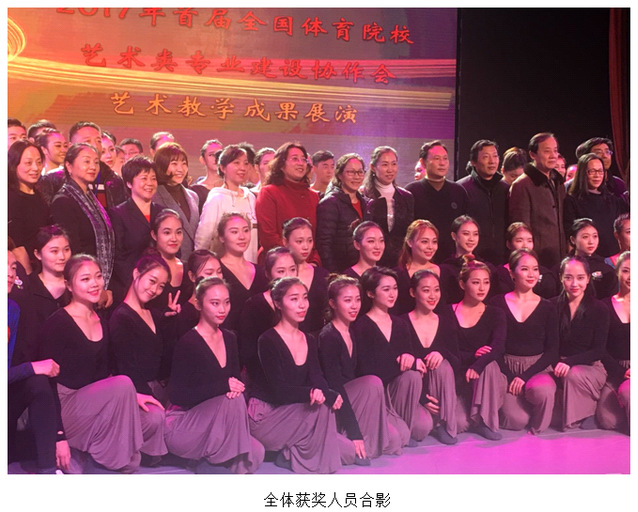 20171212日至15, 2017年全国体育院校艺术类专业协作会年会于武汉体育学院展开。民族体育与表演系主任吴晓红、副主任叶瑛、表演教研室主任江山、教师吴平平、舞蹈表演教研室教师潘悦、吴文君,以及舞蹈表演专业18名同学前往参加“艺术教学成果展演”。