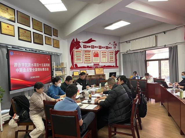 12月5日上午,游泳学院召开跳水项目十五届全运会周期中期盘点暨全国锦标赛总结会。训练处副处长叶蓁、校训练与管理督导组专家袁紫娟、靳鲁芳出席会议。会议由游泳学院院长王伟新主持。游泳学院党总支书记骆晓娟、跳水队管理干部、全体教练员参加会议。