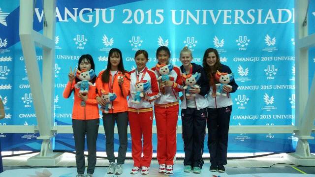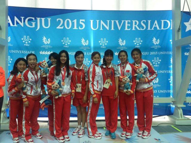 7月9日,在韩国光州举行的第28届世界大学生运动会跳水比赛中,我系运动员屈琳、孙梦晨获得女子双人3米板冠军;屈琳、孙梦晨、郑曲琳与队友合作获得女子团体冠军。