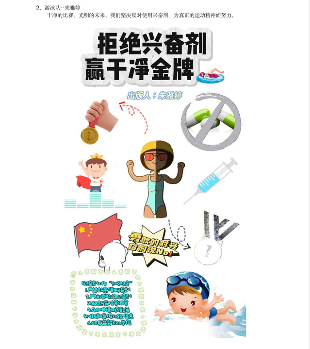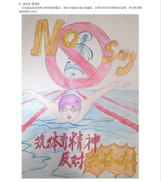 根据省体育局《关于开展2025年江苏省“纯洁体育宣传月”系列活动—宣传海报设计大赛和征集形象标识活动的通知》精神,结合学校部署安排,游泳学院认真落实相关要求,积极响应、广泛宣传,组织运动员紧密围绕“逐梦十五运,共赴纯洁体育之约”这一主题,将宣传反兴奋剂知识和项目特点、发挥创作热情结合起来,踊跃参加海报设计大赛,营造良好的反兴奋剂宣传氛围。